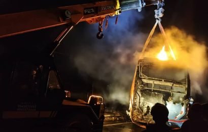 Share this on WhatsAppನೆಲಮಂಗಲ : ವಿದ್ಯುತ್ ಕಂಬಕ್ಕೆ ಡಿಕ್ಕಿಯಾಗಿ ಹೊತ್ತಿ ಉರಿದ ಖಾಸಗಿ ಬಸ್ ; ಅದೃಷ್ಟವಶಾತ್ ಪ್ರಯಾಣಿಕರು ಪಾರು ನೆಲಮಂಗಲ: ಬೆಂಗಳೂರಿನಿಂದ ಕಲಬುರಗಿಗೆ ಹೊರಟಿದ್ದ ಖಾಸಗಿ ಬಸ್ ವಿದ್ಯುತ್ ಕಂಬಕ್ಕೆ ಡಿಕ್ಕಿ ಹೊಡೆದು ಬೆಂಕಿಗೆ ಆಹುತಿಯಾಗಿರುವ ಘಟನೆ ನಡೆದಿದೆ. … Continue reading ನೆಲಮಂಗಲ : ವಿದ್ಯುತ್ ಕಂಬಕ್ಕೆ ಡಿಕ್ಕಿಯಾಗಿ ಹೊತ್ತಿ ಉರಿದ ಖಾಸಗಿ ಬಸ್ ; ಅದೃಷ್ಟವಶಾತ್ ಪ್ರಯಾಣಿಕರು ಪಾರು – vishwanews24