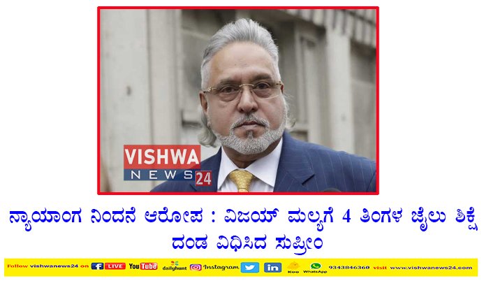 ನ್ಯಾಯಾಂಗ ನಿಂದನೆ ಆರೋಪ : ವಿಜಯ್ ಮಲ್ಯಗೆ 4 ತಿಂಗಳ ಜೈಲು ಶಿಕ್ಷೆ , ದಂಡ ವಿಧಿಸಿದ ಸುಪ್ರೀಂ – Vishwanews24