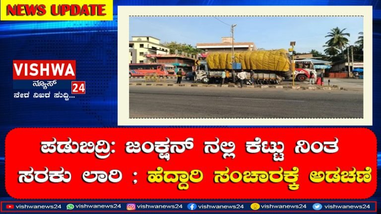 ಪಡುಬಿದ್ರಿ: ಜಂಕ್ಷನ್ ನಲ್ಲಿ ಕೆಟ್ಟು ನಿಂತ ಸರಕು ಲಾರಿ ; ಹೆದ್ದಾರಿ ಸಂಚಾರಕ್ಕೆ ಅಡಚಣೆ – Vishwanews24