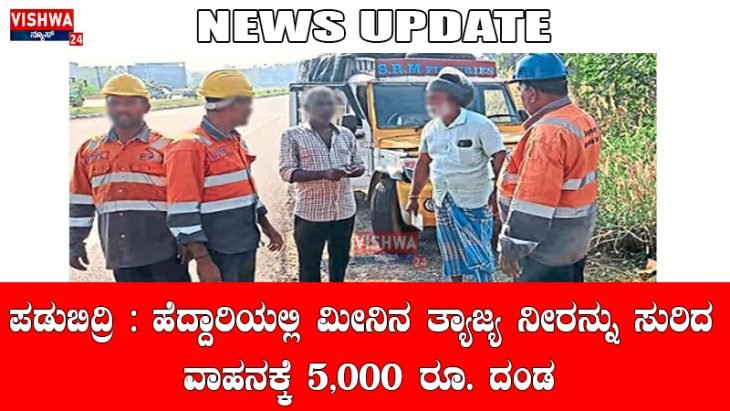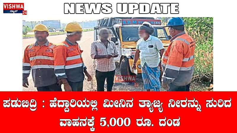 ಪಡುಬಿದ್ರಿ : ಹೆದ್ದಾರಿಯಲ್ಲಿ ಮೀನಿನ ತ್ಯಾಜ್ಯ ನೀರನ್ನು ಸುರಿದ ವಾಹನಕ್ಕೆ 5,000 ರೂ. ದಂಡ – vishwanews24