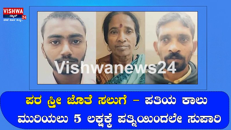 ಪರ ಸ್ತ್ರೀ ಜೊತೆ ಸಲುಗೆ : ಪತಿಯ ಎರಡು ಕಾಲು ಮುರಿಯಲು 5 ಲಕ್ಷಕ್ಕೆ  ಸುಪಾರಿ ನೀಡಿದ ಪತ್ನಿ – vishwanews24