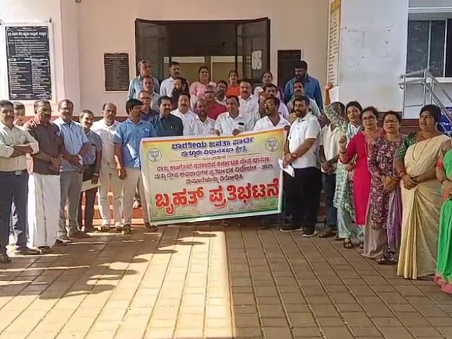 ಪುತ್ತೂರು ಮಿನಿ ವಿಧಾನಸೌಧ ಮುಂದೆ ಬಿಜೆಪಿ ಪುತ್ತೂರು ಘಟಕದಿಂದ ವತಿಯಿಂದ ಪ್ರತಿಭಟನೆ ನಡೆಸಲಾಯಿತು. ಈ ವೇಳೆ ರಾಜ್ಯ ಕಾಂಗ್ರೇಸ್ ಸರಕಾರದ ವಿರುದ್ಧ ಬಿಜೆಪಿ ರ್ಯಕರ್ತರು ಘೋಷಣೆ ಕೂಗಿದರು. ರಾಜ್ಯ ಸರಕಾರದ ದ್ವೇಷ ಭಾಷಣ ಪ್ರತಿಬಂಧಕ ವಿಧೇಯಕದಲ್ಲಿ ದ್ವೇಷ ಭಾಷಣ ಪದಕ್ಕೆ ಸ್ಪಷ್ಟ ವ್ಯಾಖ್ಯಾನವಿಲ್ಲ, ಕಾಯ್ದೆ ಜಾರಿಗೆ ಬಂದಲ್ಲಿ ಆಡಳಿತಾರೂಢ ಪಕ್ಷದ ವಿರುದ್ಧ ಮಾತನಾಡುವವರ ಧ್ವನಿ ಅಡಗಿಸುವ ಪ್ರಯತ್ನ ನಡೆಯಲಿದೆ ಎಂದು ಬಿಜೆಪಿ ಮುಖಂಡರ ಆರೋಪಿಸಿದರು.