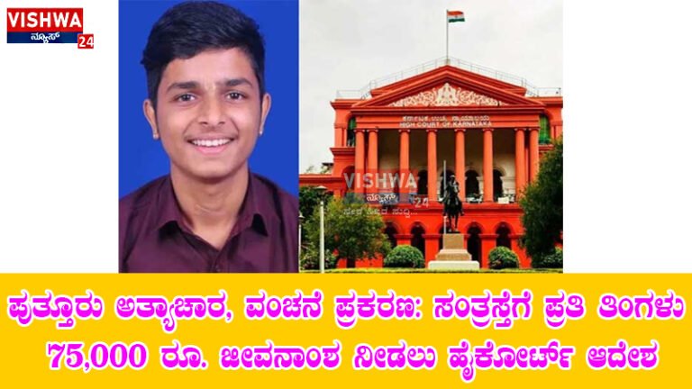Share this on WhatsAppಪುತ್ತೂರು ಅತ್ಯಾಚಾರ, ವಂಚನೆ ಪ್ರಕರಣ: ಸಂತ್ರಸ್ತೆಗೆ ಪ್ರತಿ ತಿಂಗಳು 75,000 ರೂ. ಜೀವನಾಂಶ ನೀಡಲು ಹೈಕೋರ್ಟ್ ಆದೇಶ ಬೆಂಗಳೂರು : ಬಿಜೆಪಿ ಮುಖಂಡನ ಪುತ್ರನ ವಿರುದ್ಧ ಅತ್ಯಾಚಾರ ಆರೋಪ ಪ್ರಕರಣಕ್ಕೆ ಸಂಬಂಧಿಸಿದಂತೆ ಸಂತ್ರಸ್ತೆಗೆ ಪ್ರತಿ ತಿಂಗಳು 75 … Continue reading ಪುತ್ತೂರು ವಂಚನೆ ಪ್ರಕರಣ: ಸಂತ್ರಸ್ತೆಗೆ ಪ್ರತಿ ತಿಂಗಳು 75,000 ರೂ. ಜೀವನಾಂಶ ನೀಡಲು ಹೈಕೋರ್ಟ್ ಆದೇಶ – vishwanews24