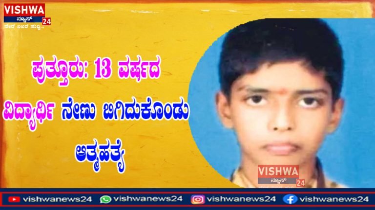 ಪುತ್ತೂರು: 13 ವರ್ಷದ ವಿದ್ಯಾರ್ಥಿ ನೇಣು ಬಿಗಿದುಕೊಂಡು ಆತ್ಮಹತ್ಯೆ – vishwanews24