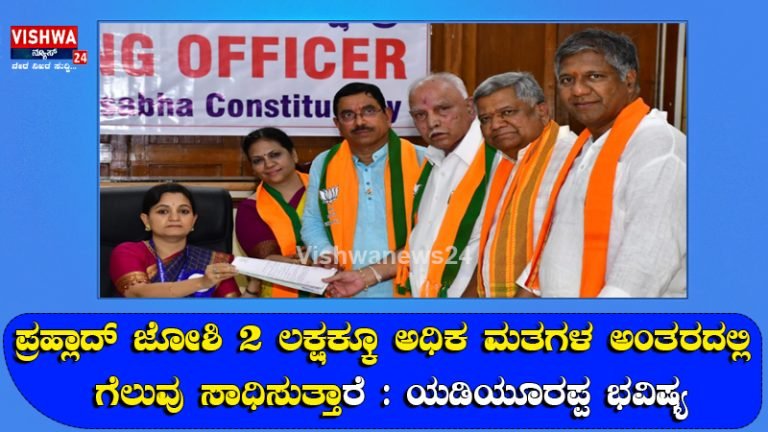 ಪ್ರಹ್ಲಾದ್ ಜೋಶಿ 2 ಲಕ್ಷಕ್ಕೂ ಅಧಿಕ ಮತಗಳ ಅಂತರದಲ್ಲಿ ಗೆಲುವು ಸಾಧಿಸುತ್ತಾರೆ : ಯಡಿಯೂರಪ್ಪ ಭವಿಷ್ಯ – Vishwanews24