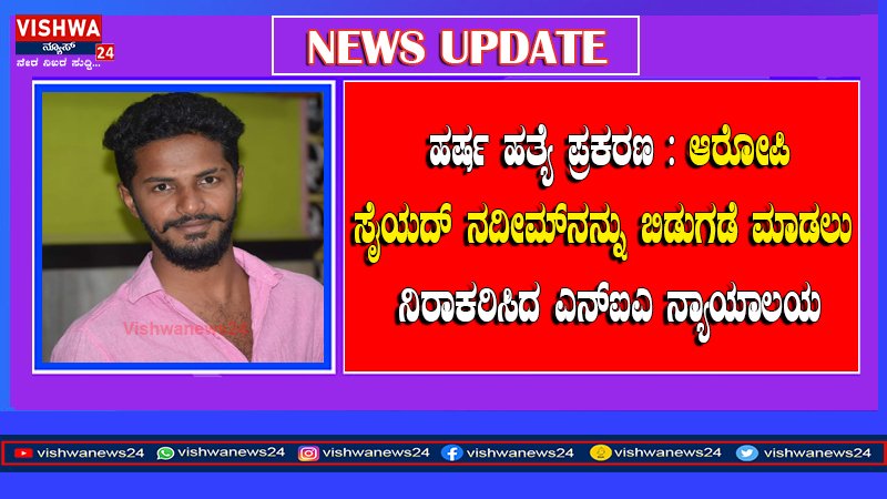 ಬಜರಂಗದಳ ಕಾರ್ಯಕರ್ತ ಹರ್ಷ ಹತ್ಯೆ ಪ್ರಕರಣ : ಆರೋಪಿ ಸೈಯದ್ ನದೀಮ್ನನ್ನು ಬಿಡುಗಡೆ ಮಾಡಲು ನಿರಾಕರಿಸಿದ ಎನ್ಐಎ ನ್ಯಾಯಾಲಯ – Vishwanews24