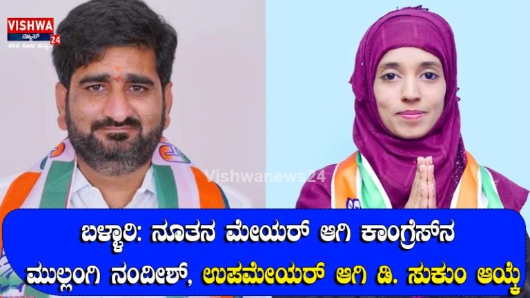 ಬಳ್ಳಾರಿ: ನೂತನ ಮೇಯರ್ ಆಗಿ ಕಾಂಗ್ರೆಸ್ನ ಮುಲ್ಲಂಗಿ ನಂದೀಶ್, ಉಪಮೇಯರ್ ಆಗಿ ಡಿ. ಸುಕುಂ ಆಯ್ಕೆ – vishwanews24