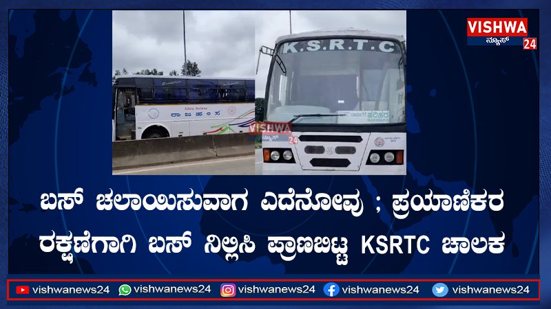 ಬಸ್‌ ಚಲಾಯಿಸುವಾಗ ಎದೆನೋವು ; ಪ್ರಯಾಣಿಕರ ರಕ್ಷಣೆಗಾಗಿ ಬಸ್ ನಿಲ್ಲಿಸಿ ಪ್ರಾಣಬಿಟ್ಟ KSRTC ಚಾಲಕ – vishwanews24