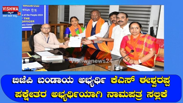 ಬೃಹತ ಮೆರವಣಿಗೆ ಮೂಲಕ ಜಿಲ್ಲಾಧಿಕಾರಿಗಳ ಕಚೇರಿಗೆ ಬಂದು ಉಮೇದುವಾರಿಕೆ ಸಲ್ಲಿಸಿದರು. ಪುತ್ರ ಕಾಂತೇಶ್ಗೆ ಹಾವೇರಿ ಲೋಕಸಭಾ ಕ್ಷೇತ್ರದ ಟಿಕೆಟ್ ಸಿಗದ ಹಿನ್ನೆಲೆಯಲ್ಲಿ ಅಸಮಾಧಾನಗೊಂಡ ಬಿಜೆಪಿ ಹಿರಿಯ ಮುಖಂಡ ಕೆಎಸ್ ಈಶ್ವರಪ್ಪ ಅವರು ಶಿವಮೊಗ್ಗ ಕ್ಷೇತ್ರದಿಂದ ಪಕ್ಷೇತರ ಅಭ್ಯರ್ಥಿಯಾಗಿ ಸ್ಪರ್ಧಿಸಿದ್ದಾರೆ. ರಾಜ್ಯ ಬಿಜೆಪಿಯಲ್ಲಿನ ಕುಟುಂಬ ರಾಜಕಾರಣದ ವಿರೋಧಿಸಿ ಸ್ಪರ್ಧೆ ಮಾಡುತ್ತಿದ್ದೇನೆ ಎಂದು ಕೆಎಸ್ ಈಶ್ವರಪ್ಪ ಹೇಳಿದ್ದಾರೆ.