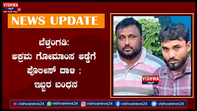 ಬೆಳ್ತಂಗಡಿ: ಅಕ್ರಮ ಗೋಮಾಂಸ ಅಡ್ಡೆಗೆ ಪೊಲೀಸ್ ದಾಳಿ ; ಇಬ್ಬರ ಬಂಧನ – vishwanews24