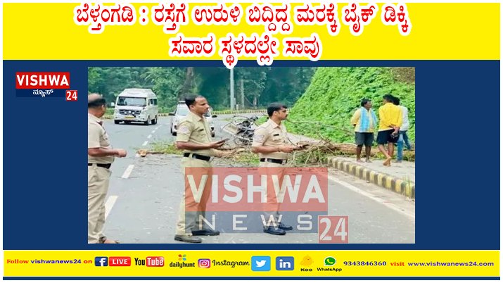 ಬೆಳ್ತಂಗಡಿ : ರಸ್ತೆಗೆ ಉರುಳಿ ಬಿದ್ದಿದ್ದ ಮರಕ್ಕೆ ಬೈಕ್ ಡಿಕ್ಕಿ : ಸವಾರ ಸ್ಥಳದಲ್ಲೇ ಸಾವು – Vishwnaews24