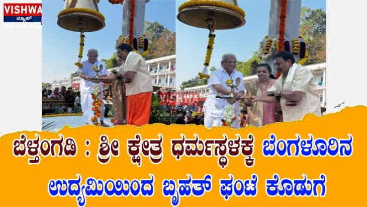 ಬೆಳ್ತಂಗಡಿ:  ಶ್ರೀ ಕ್ಷೇತ್ರ ಧರ್ಮಸ್ಥಳಕ್ಕೆ ಬೆಂಗಳೂರಿನ ಉದ್ಯಮಿಯಿಂದ ಬೃಹತ್‌ ಘಂಟೆ ಕೊಡುಗೆ – vishwanews24