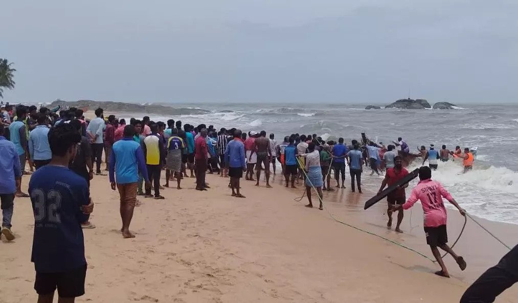 ಬೈಂದೂರು: ಸಮುದ್ರದ ಅಲೆಗಳ ಅಬ್ಬರಕ್ಕೆ ಮಗುಚಿದ ದೋಣಿ ;