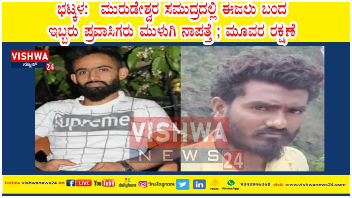 ಭಟ್ಕಳ:  ಮುರುಡೇಶ್ವರ ಸಮುದ್ರದಲ್ಲಿ ಈಜಲು ಬಂದ ಇಬ್ಬರು ಪ್ರವಾಸಿಗರು ಮುಳುಗಿ ನಾಪತ್ತೆ ; ಮೂವರ ರಕ್ಷಣೆ – Vishwnaews24