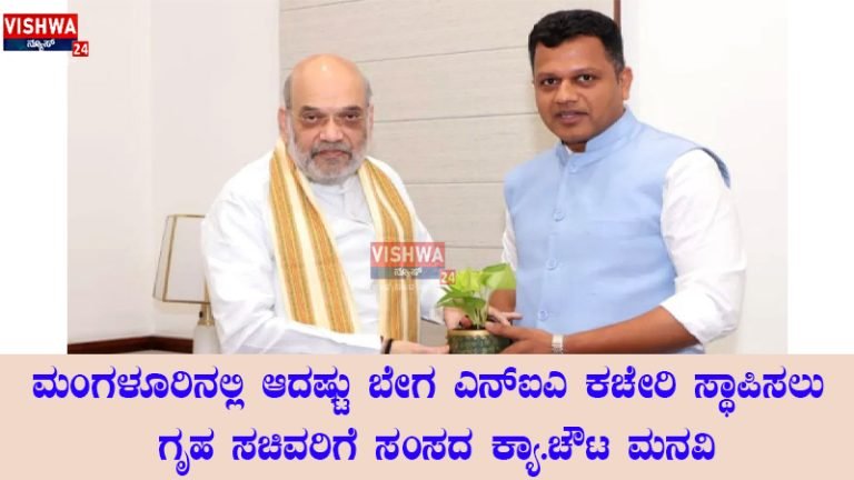 ಮಂಗಳೂರಿನಲ್ಲಿ ಆದಷ್ಟು ಬೇಗ ಎನ್ಐಎ ಕಚೇರಿ ಸ್ಥಾಪಿಸಲು ಗೃಹ ಸಚಿವರಿಗೆ ಸಂಸದ ಕ್ಯಾ.ಚೌಟ ಮನವಿ – vishwanews24