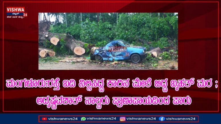 Share this on WhatsAppಮಂಗಳೂರು:ರಸ್ತೆ ಬದಿ ನಿಲ್ಲಿಸಿದ್ದ ಕಾರಿನ ಮೇಲೆ ಬಿದ್ದ ಬೃಹತ್ ಮರ ; ಅದೃಷ್ಟವಶಾತ್ ನಾಲ್ವರು ಪ್ರಾಣಾಪಾಯದಿಂದ ಪಾರು ಮಂಗಳೂರು: ದಕ್ಷಿಣ ಕನ್ನಡ ಜಿಲ್ಲೆಯಲ್ಲಿ ಸುರಿಯುತ್ತಿರುವ ಭಾರೀ ಮಳೆಯಿಂದಾಗಿ ಬೃಹತ್ ಮಾವಿನ ಮರವೊಂದು ನಿಲ್ಲಿಸಿದ್ದ ಕಾರಿನ ಮೇಲೆ ಬಿದ್ದ ಘಟನೆ … Continue reading ಮಂಗಳೂರು:ರಸ್ತೆ ಬದಿ ನಿಲ್ಲಿಸಿದ್ದ ಕಾರಿನ ಮೇಲೆ ಬಿದ್ದ ಬೃಹತ್ ಮರ ; ಅದೃಷ್ಟವಶಾತ್ ನಾಲ್ವರು ಪ್ರಾಣಾಪಾಯದಿಂದ ಪಾರು – vishwanews24