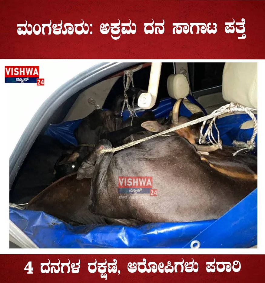 ಮಂಗಳೂರು: ಅಕ್ರಮ ದನ ಸಾಗಾಟ ಪತ್ತೆ ; 4 ದನಗಳ ರಕ್ಷಣೆ, ಆರೋಪಿಗಳು ಪರಾರಿ – vishwanews24