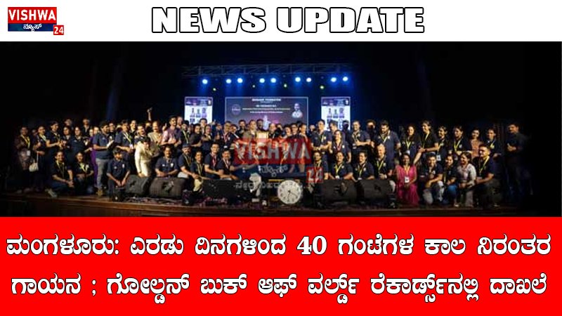 ಮಂಗಳೂರು: ಎರಡು ದಿನಗಳಿಂದ 40 ಗಂಟೆಗಳ ಕಾಲ ನಿರಂತರ ಗಾಯನ ; ಗೋಲ್ಡನ್ ಬುಕ್ ಆಫ್ ವರ್ಲ್ಡ್ ರೆಕಾರ್ಡ್ಸ್ನಲ್ಲಿ ದಾಖಲೆ – vishwanews24