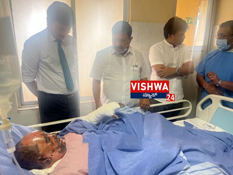 ಮಂಗಳೂರು: ನಗರದ ನಾಗೋರಿಯಲ್ಲಿ ಇತ್ತೀಚೆಗೆ ಆಟೋದಲ್ಲಿ ಕುಕ್ಕರ್‌ಬಾಂಬ್ ಸ್ಪೋಟದಿಂದ ಗಾಯಗೊಂಡ ರಿಕ್ಷಾ ಚಾಲಕ ಪುರುಷೋತ್ತಮ ಪೂಜಾರಿಯ ಆರೋಗ್ಯವನ್ನು ಗೃಹ ಸಚಿವ ಅರಗ ಜ್ಞಾನೇಂದ್ರ ವಿಚಾರಿಸಿದರು.