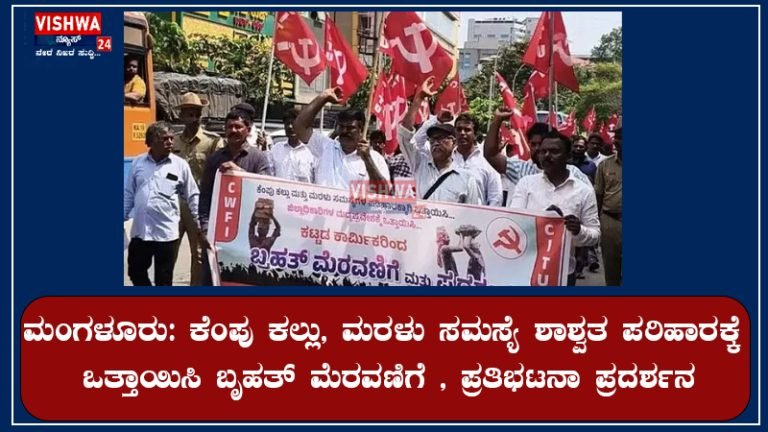 ಮಂಗಳೂರು: ದಕ್ಷಿಣ ಕನ್ನಡ ಜಿಲ್ಲೆಯ ಕೆಂಪು ಕಲ್ಲು ಮತ್ತು ಮರಳು ಸಮಸ್ಯೆಗೆ ಶಾಶ್ವತ ಪರಿಹಾರಕ್ಕೆ ಒತ್ತಾಯಿಸಿ ಸೋಮವಾರ ಕರ್ನಾಟಕ ರಾಜ್ಯ ಕಟ್ಟಡ ಮತ್ತು ಇತರೆ ನಿರ್ಮಾಣ ಕಾರ್ಮಿಕರ ಫೆಡರೇಶನ್ (ರಿ)ಸಿಡಬ್ಲ್ಯುಎಫ್ಐ -ಸಿಐಟಿಯು ದಕ್ಷಿಣ ಕನ್ನಡ ಜಿಲ್ಲಾ ಸಮಿತಿಯ ನೇತೃತ್ವದಲ್ಲಿ ಕಟ್ಟಡ ಮತ್ತು ನಿರ್ಮಾಣ ಕಾರ್ಮಿಕರ ಬೃಹತ್ ಮೆರವಣಿಗೆ ಮಂಗಳೂರಿನ ಜ್ಯೋತಿ ಅಂಬೇಡ್ಕರ್ ವೃತ್ತದಿಂದ ಮಿನಿ ವಿಧಾನಸೌಧದ ತನಕ ನಡೆಯಿತು.