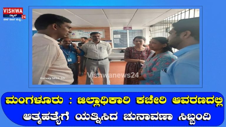 ಮಂಗಳೂರು : ಜಿಲ್ಲಾಧಿಕಾರಿ ಕಚೇರಿ ಆವರಣದಲ್ಲಿ ಆತ್ಮಹತ್ಯೆಗೆ ಯತ್ನಿಸಿದ ಚುನಾವಣಾ ಸಿಬ್ಬಂದಿ – Vishwanews24