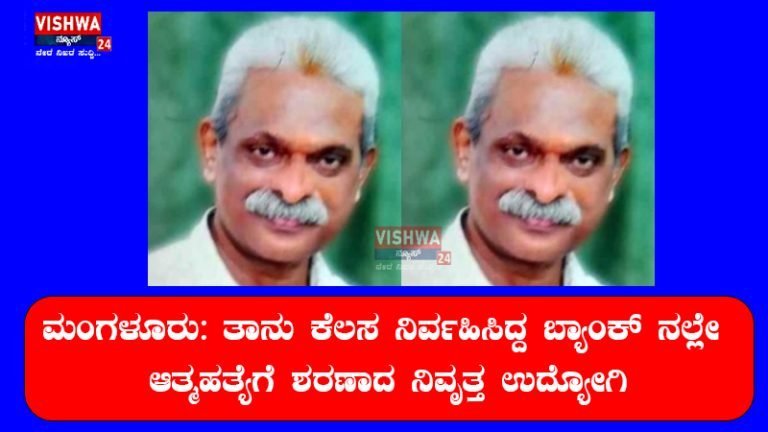 ಮಂಗಳೂರು: ತಾನು ಕೆಲಸ ನಿರ್ವಹಿಸಿದ್ದ ಬ್ಯಾಂಕ್ ನಲ್ಲೇ ಆತ್ಮಹತ್ಯೆಗೆ ಶರಣಾದ ನಿವೃತ್ತ ಉದ್ಯೋಗಿ – vishwanews24