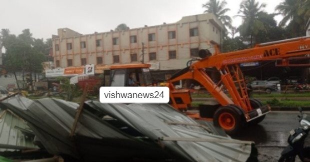 ರೂಫ್ ಟಾಪ್ ನ ತಗಡುಶೀಟುಗಳು ಕಬ್ಬಿಣದ ಪಟ್ಟಿ ಸಮೇತ ಹೆದ್ದಾರಿಯ ಒಂದು ಬದಿಯಿಂದ ಮತ್ತೊಂದು ಬದಿಗೆ ಹಾರಿ ಬಿದ್ದಿದ್ದು. ಪರಿಣಾಮವಾಗಿ ಹೆದ್ದಾರಿ ಪಕ್ಕದ ಮೂರು ವಿದ್ಯುತ್ ಕಂಬಗಳು ನೆಲಕ್ಕುರುಳಿವೆ. ಎದುರು ಭಾಗದ ಕೊಜಪಾಡಿ ಟವರ್ಸ್ ನ ಮೇಲ್ಚಾವಣಿ ಮೇಲೆಯೂ ಬಿದ್ದು ಲಕ್ಷಾಂತರ ರೂ. ಹಾನಿಯಾಗಿದೆ. ಭಾರಿ ಅವಘಡ ತಪ್ಪಿದೆ.