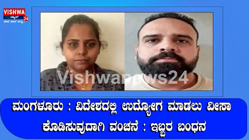 ಮಂಗಳೂರು : ವಿದೇಶದಲ್ಲಿ ಉದ್ಯೋಗ ಮಾಡಲು ವೀಸಾ ಕೊಡಿಸುವುದಾಗಿ ವಂಚನೆ : ಇಬ್ಬರ ಬಂಧನ – vishwanews24