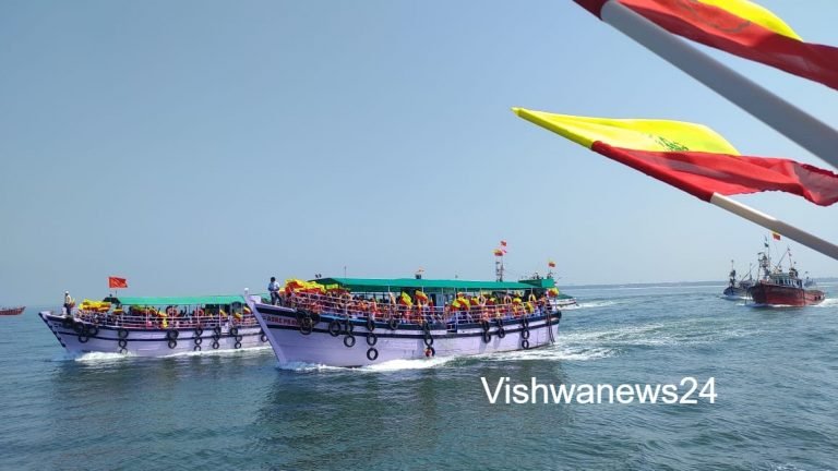 ಉಡುಪಿ: ಕನ್ನಡ ರಾಜ್ಯೋತ್ಸವ ಪ್ರಯುಕ್ತ ಆಯೋಜಿಸಲಾಗಿರುವ ಕೋಟಿ ಕಂಠ ಗಾಯನ ಎಂಬ ಮಹಾಕಾರ್ಯಕ್ರಮಕ್ಕೆ ಉಡುಪಿ ಜಿಲ್ಲೆಯೂ ತನ್ನ ಕಾಣಿಕೆಯನ್ನು ನೀಡಿದೆ. ದಕ್ಷಿಣ ಕನ್ನಡ ಮತ್ತು ಉಡುಪಿ ಜಿಲ್ಲಾ ಸಹಕಾರಿ ಮೀನು ಮಾರಾಟ ಫೆಡರೇಶನ್ ಮಂಗಳೂರು ಮತ್ತು ಮಹಾಲಕ್ಷ್ಮೀ ಕೋ ಆಪರೇಟಿವ್ ಬ್ಯಾಂಕ್ ಉಡುಪಿ ವತಿಯಿಂದ, ಉಡುಪಿ ಜಿಲ್ಲಾಡಳಿತ, ಕನ್ನಡ ಮತ್ತು ಸಂಸ್ಕೃತಿ ಇಲಾಖೆ ಹಾಗೂ ಮಲ್ಪೆ ಮೀನುಗಾರರ ಸಂಘದ ಸಹಕಾರದೊಂದಿಗೆ ಅರಬ್ಬಿ ಸಮುದ್ರದ ಮಧ್ಯದಲ್ಲಿ ಆಯೋಜಿಸಿದ್ದ ಕೋಟಿ ಕಂಠ ಗಾಯನಕ್ಕೆ ಶುಕ್ರವಾರ ಅದ್ಧೂರಿಯಾಗಿ ಚಾಲನೆ ದೊರಕಿತು.