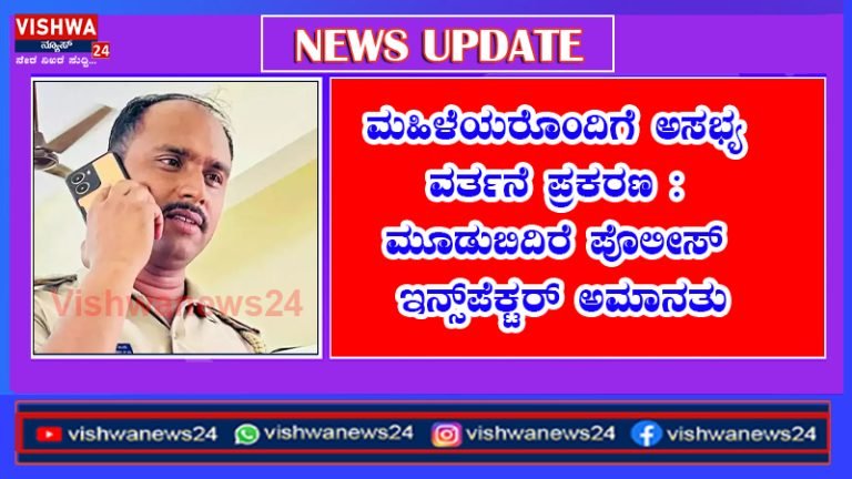 ಮಹಿಳೆಯರೊಂದಿಗೆ ಅಸಭ್ಯ ವರ್ತನೆ ಪ್ರಕರಣ : ಮೂಡುಬಿದಿರೆ ಪೊಲೀಸ್ ಇನ್ಸ್‌ಪೆಕ್ಟರ್ ಅಮಾನತು – vishwanews24