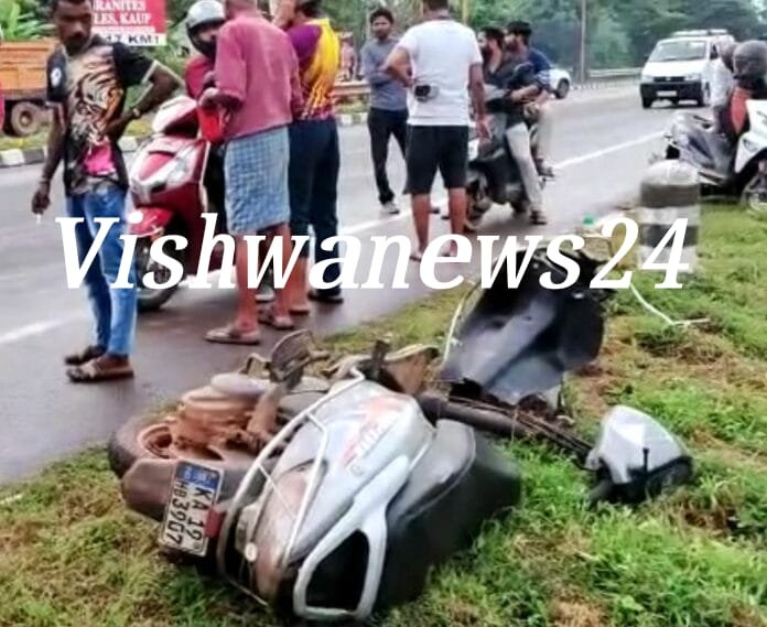 ಮುಲ್ಕಿ ಕಡೆಯಿಂದ ಮಂಗಳೂರು ಕಡೆಗೆ ಹೋಗುತ್ತಿದ್ದ ಬುಲೆಟ್ ಸವಾರ ರಾಷ್ಟ್ರೀಯ ಹೆದ್ದಾರಿ ಕಾರ್ನಾಡು ಬೈಪಾಸ್ ಬಳಿ ಕಾರ್ನಾಡ್ ಒಳ ಜಂಕ್ಷನ್ ನಿಂದ ಚಿತ್ರಾಪು ಕಡೆಗೆ ಹೆದ್ದಾರಿ ಕ್ರಾಸ್ ಮಾಡಲು ನಿಂತಿದ್ದ ವೇಳೆಯಲ್ಲಿ ಸ್ಕೂಟರ್ ಗೆ ಬಂದು ಡಿಕ್ಕಿ ಹೊಡೆದಿದೆ.