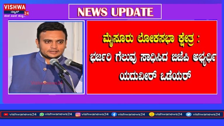 ಮೈಸೂರು ಲೋಕಸಭಾ ಕ್ಷೇತ್ರ : ಭರ್ಜರಿ ಗೆಲುವು ಸಾಧಿಸಿದ ಬಿಜೆಪಿ ಅಭ್ಯರ್ಥಿ ಯದುವೀರ್ ಒಡೆಯರ್ – vishwanews24