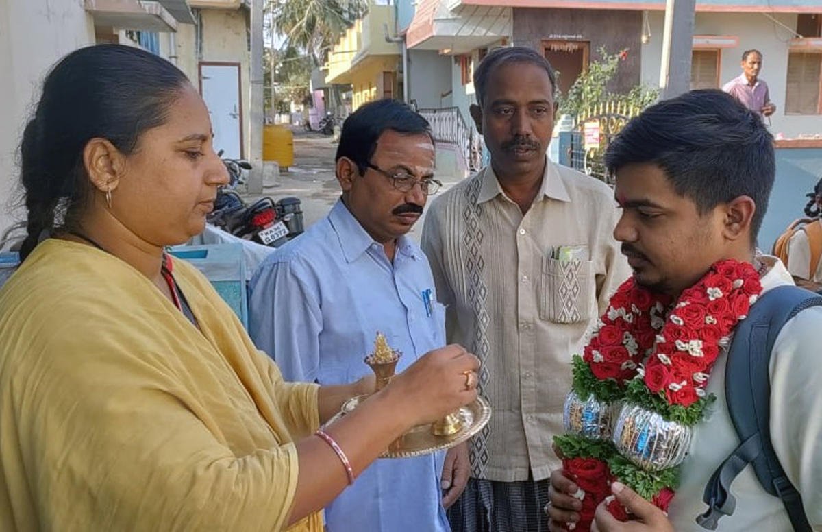 ಉಕ್ರೇನ್‌ನಿಂದ ತಾಲ್ಲೂಕಿನ ಹೊನ್ನಳ್ಳಿ ಗ್ರಾಮಕ್ಕೆಆಗಮಿಸಿದ ನಂತರ ತಮ್ಮ ಅನುಭವಗಳನ್ನು ಹಂಚಿಕೊಂಡರು.