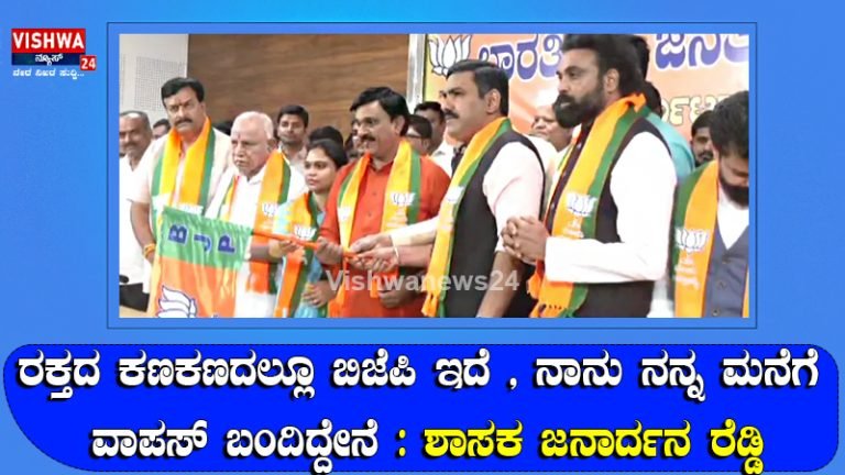 ರಕ್ತದ ಕಣಕಣದಲ್ಲೂ ಬಿಜೆಪಿ ಇದೆ , ನಾನು ನನ್ನ ಮನೆಗೆ ವಾಪಸ್ ಬಂದಿದ್ದೇನೆ : ಶಾಸಕ ಜನಾರ್ದನ ರೆಡ್ಡಿ – Vishwanews24