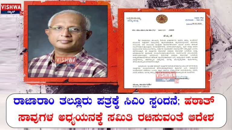 Share this on WhatsAppರಾಜಾರಾಂ ತಲ್ಲೂರು ಪತ್ರಕ್ಕೆ ಸಿಎಂ ಸ್ಪಂದನೆ; ಹಠಾತ್ ಸಾವುಗಳ ಅಧ್ಯಯನಕ್ಕೆ ಸಮಿತಿ ರಚಿಸುವಂತೆ ಆದೇಶ ಉಡುಪಿ,: ರಾಜ್ಯದಲ್ಲಿ ಯುವಕರ ಹಠಾತ್ ಸಾವಿನ ಹೆಚ್ಚಳದ ಬಗ್ಗೆ ಹಿರಿಯ ಪತ್ರಕರ್ತ ರಾಜಾರಾಮ್ ತಲ್ಲೂರ್ ಅವರ ಪತ್ರದ ಮೇರೆಗೆ ಸಿಎಂ ಸಿದ್ದರಾಮಯ್ಯ … Continue reading ರಾಜ್ಯದಲ್ಲಿ ಯುವ ಜನರ ಹಠಾತ್ ಸಾವು : ತನಿಖೆ ನಡೆಸಲು ತಜ್ಞರ ಸಮಿತಿ ರಚಿಸುವಂತೆ ಸಿಎಂ ಆದೇಶ – vishwanews24