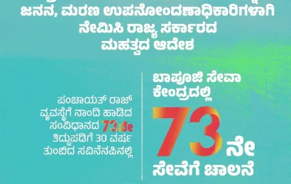 Share this on WhatsAppರಾಜ್ಯದ ಜನತೆಗೆ ಗುಡ್ ನ್ಯೂಸ್ : ಇನ್ಮುಂದೆ ʻಬಾಪೂಜಿ ಸೇವಾ ಕೇಂದ್ರʼಗಳಲ್ಲೇ ಸಿಗಲಿದೆ ʻಜನನ- ಮರಣ ನೋಂದಣಿʼ ಸೇವೆ ಬೆಂಗಳೂರು : ರಾಜ್ಯ ಸರ್ಕಾರವು ಜನತೆಗೆ ಮತ್ತೊಂದು ಗುಡ್ ನ್ಯೂಸ್ ನೀಡಿದ್ದು, ಬಾಪೂಜಿ ಸೇವಾ ಕೇಂದ್ರಗಳಲ್ಲಿ ಇನ್ಮುಂದೆ … Continue reading ರಾಜ್ಯದ ಜನತೆಗೆ ಗುಡ್ ನ್ಯೂಸ್ : ಇನ್ಮುಂದೆ ಬಾಪೂಜಿ ಸೇವಾ ಕೇಂದ್ರಗಳಲ್ಲೇ ಸಿಗಲಿದೆ ಜನನ- ಮರಣ ನೋಂದಣಿ ಸೇವೆ – Vishwanews24
