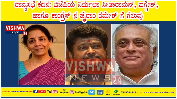 ಬೆಂಗಳೂರು: ರಾಜ್ಯಸಭೆಯ ನಾಲ್ಕು ಸ್ಥಾನಗಳಿಗೆ ನಡೆಯುತ್ತಿರುವ ಚುನಾವಣೆಯಲ್ಲಿ ಬಿಜೆಪಿಯ ಅಭ್ಯರ್ಥಿ ನಿರ್ಮಲಾ ಸೀತಾರಾಮನ್ ಹಾಗೂ ಕಾಂಗ್ರೆಸ್ ಅಭ್ಯರ್ಥಿ ಜೈರಾಂ ರಮೇಶ್ ಅವರಿಗೆ ಮೊದಲ ಸುತ್ತಿನ ಪ್ರಾಶಸ್ತ್ಯ ಮತಗಳಲ್ಲಿ ಗೆಲುವು ಸಿಕ್ಕಿದೆ. ಚುನಾವಣಾ ಆಯೋಗದಿಂದ ಅಧಿಕೃತ ಘೋಷಣೆ ಮಾತ್ರ ಬಾಕಿ ಇದೆ.