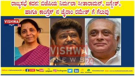 Share this on WhatsAppರಾಜ್ಯಸಭೆ ಕದನ: ಬಿಜೆಪಿಯ ನಿರ್ಮಲಾ ಸೀತಾರಾಮನ್, ಜಗ್ಗೇಶ್, ಹಾಗೂ ಕಾಂಗ್ರೆಸ್ ನ ಜೈರಾಂ ರಮೇಶ್ ಗೆ ಗೆಲುವು ಬೆಂಗಳೂರು: ರಾಜ್ಯಸಭೆಯ ನಾಲ್ಕು ಸ್ಥಾನಗಳಿಗೆ ನಡೆಯುತ್ತಿರುವ ಚುನಾವಣೆಯಲ್ಲಿ ಬಿಜೆಪಿಯ ಅಭ್ಯರ್ಥಿ ನಿರ್ಮಲಾ ಸೀತಾರಾಮನ್ ಹಾಗೂ ಕಾಂಗ್ರೆಸ್ ಅಭ್ಯರ್ಥಿ ಜೈರಾಂ … Continue reading ರಾಜ್ಯಸಭೆ ಕದನ: ಬಿಜೆಪಿಯ ನಿರ್ಮಲಾ ಸೀತಾರಾಮನ್, ಜಗ್ಗೇಶ್, ಹಾಗೂ ಕಾಂಗ್ರೆಸ್ ನ ಜೈರಾಂ ರಮೇಶ್ ಗೆ ಗೆಲುವು – Vishwnaews24