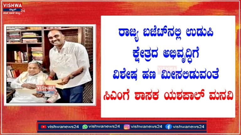ರಾಜ್ಯ ಬಜೆಟ್‌ನಲ್ಲಿ ಉಡುಪಿ ಕ್ಷೇತ್ರದ ಅಭಿವೃದ್ಧಿಗೆ ವಿಶೇಷ ಹಣ ಮೀಸಲಿಡುವಂತೆ ಸಿಎಂಗೆ ಶಾಸಕ ಯಶಪಾಲ್‌ ಮನವಿ – vishwanews24