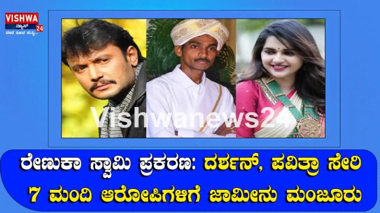 ರೇಣುಕಾ ಸ್ವಾಮಿ ಪ್ರಕರಣ: ದರ್ಶನ್, ಪವಿತ್ರಾ ಸೇರಿ 7 ಮಂದಿ ಆರೋಪಿಗಳಿಗೆ ಜಾಮೀನು ಮಂಜೂರು – vishwanews24