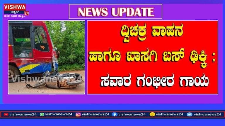 ವಿಟ್ಲ : ದ್ವಿಚಕ್ರ ವಾಹನ ಹಾಗೂ ಖಾಸಗಿ ಬಸ್  ಢಿಕ್ಕಿ ; ಸವಾರ ಗಂಭೀರ ಗಾಯ – vishwanews24