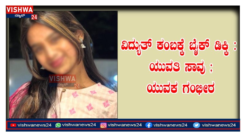 ವಿದ್ಯುತ್ ಕಂಬಕ್ಕೆ ಬೈಕ್ ಡಿಕ್ಕಿ : ಯುವತಿ ಸಾವು ; ಯುವಕ ಗಂಭೀರ – vishwanews24