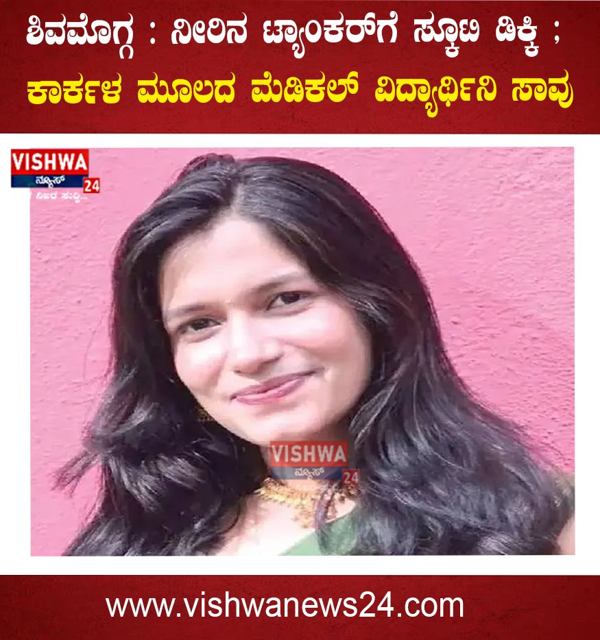 ಶಿವಮೊಗ್ಗ : ನೀರಿನ ಟ್ಯಾಂಕರ್ಗೆ ಸ್ಕೂಟಿ ಡಿಕ್ಕಿ ; ಕಾರ್ಕಳ ಮೂಲದ ಮೆಡಿಕಲ್ ವಿದ್ಯಾರ್ಥಿನಿ ಸಾವು – vishwanews24
