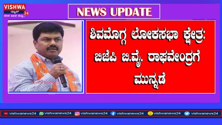 ಶಿವಮೊಗ್ಗ ಲೋಕಸಭಾ ಕ್ಷೇತ್ರ: ಬಿಜೆಪಿ ಬಿ.ವೈ. ರಾಘವೇಂದ್ರಗೆ ಮುನ್ನಡೆ, ಗೀತಾ, K.S. ಈಶ್ವರಪ್ಪಗೆ ಹಿನ್ನಡೆ – vishwanews24