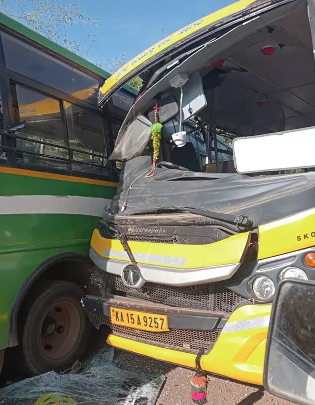 ಘಟನೆಯಲ್ಲಿ ಎರಡು ಬಸ್ ಗಳ ಮುಂಭಾಗ ಜಖಂಗೊಂಡಿದ್ದು, ಗಾಜುಗಳು ಒಡೆದಿವೆ.