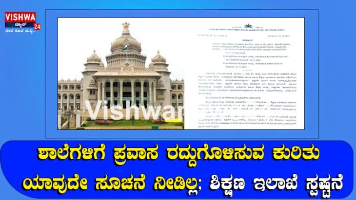 ಸಾಮಾಜಿಕ ಜಾಲತಾಣದಲ್ಲಿ ಶಾಲಾ ಪ್ರವಾಸ ರದ್ದುಗೊಳಿಸುವ ಆದೇಶ : ಶಿಕ್ಷಣ ಇಲಾಖೆ ಸ್ಪಷ್ಟನೆ – vishwanews24