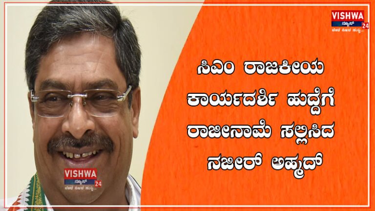 ಬೆಂಗಳೂರು : ಸಿಎಂ ರಾಜಕೀಯ ಕಾರ್ಯದರ್ಶಿ ಹುದ್ದೆಗೆ ಎಂಎಲ್ಸಿ ನಜೀರ್ ಅಹ್ಮದ್ ಅವರು ರಾಜೀನಾಮೆ ನೀಡಿದ್ದಾರೆ.