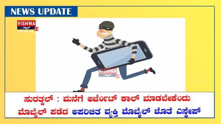 Share this on WhatsAppಸುರತ್ಕಲ್ : ಮನೆಗೆ ಅರ್ಜೆಂಟ್ ಕಾಲ್ ಮಾಡಬೇಕೆಂದು ಮೊಬೈಲ್ ಪಡೆದ ಅಪರಿಚಿತ ವ್ಯಕ್ತಿ ಮೊಬೈಲ್ ಜೊತೆ ಎಸ್ಕೇಪ್ ಸುರತ್ಕಲ್ : ಅಪರಿಚಿತ ವ್ಯಕ್ತಿಯೊಬ್ಬ ಮನೆಗೆ ಅರ್ಜೆಂಟ್ ಕಾಲ್ ಮಾಡಬೇಕೆಂದು ವ್ಯಕ್ತಿಯೊಬ್ಬರಿಂದ ಮೊಬೈಲ್ ಪಡೆದು ಬಳಿಕ ಮೊಬೈಲ್ ಜೊತೆ … Continue reading ಸುರತ್ಕಲ್ : ಮನೆಗೆ ಅರ್ಜೆಂಟ್ ಕಾಲ್ ಮಾಡಬೇಕೆಂದು ಮೊಬೈಲ್ ಪಡೆದ ಅಪರಿಚಿತ ವ್ಯಕ್ತಿ ಮೊಬೈಲ್ ಜೊತೆ ಎಸ್ಕೇಪ್ – vishwanews24