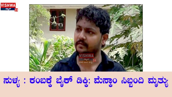 ಸುಳ್ಯ : ಕಂಬಕ್ಕೆ ಬೈಕ್ ಡಿಕ್ಕಿ; ಮೆಸ್ಕಾಂ ಸಿಬ್ಬಂದಿ ಮೃತ್ಯು – vishwanews24