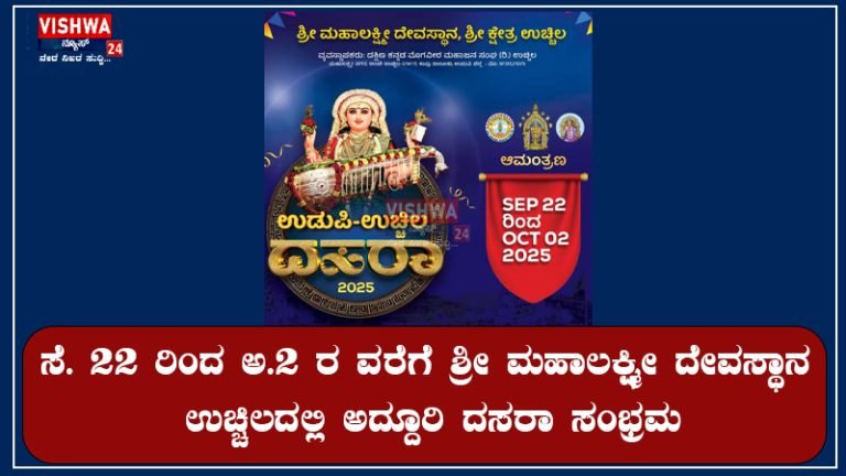 ಸೆ. 22 ರಿಂದ ಅ.2 ರ ವರೆಗೆ ಶ್ರೀ ಮಹಾಲಕ್ಷ್ಮೀ ದೇವಸ್ಥಾನ ಉಚ್ಚಿಲದಲ್ಲಿ ಅದ್ದೂರಿ ದಸರಾ ಸಂಭ್ರಮ – vishwanews24